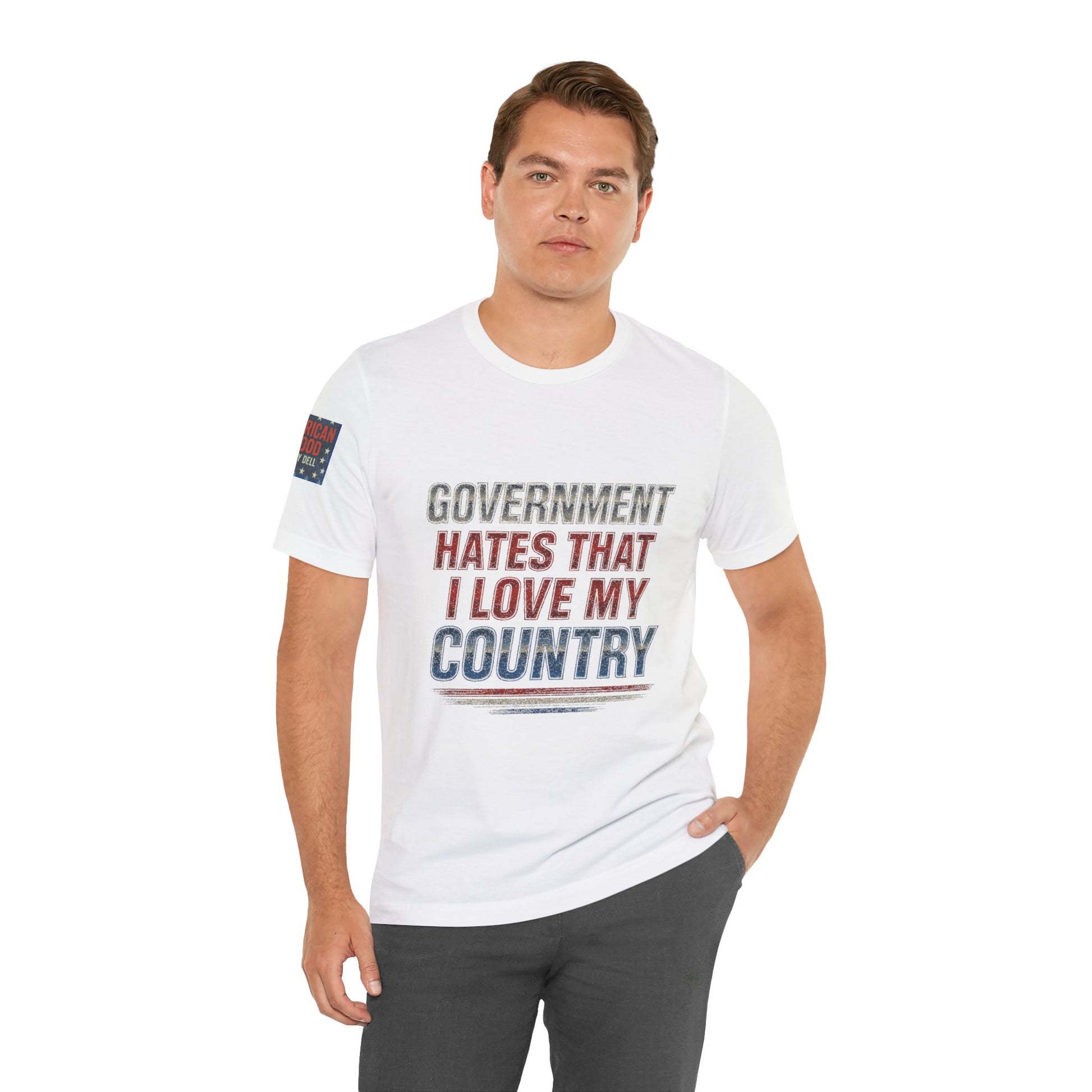 Stand proud in the American Blood Lyric T-Shirt by Tracy Dell — Make a statement. Emblazoned across the front is the powerful lyric "Government Hates That I Love My Country" capturing the rebellious heart of Tracy Dell’s anthem rock single, American Blood.